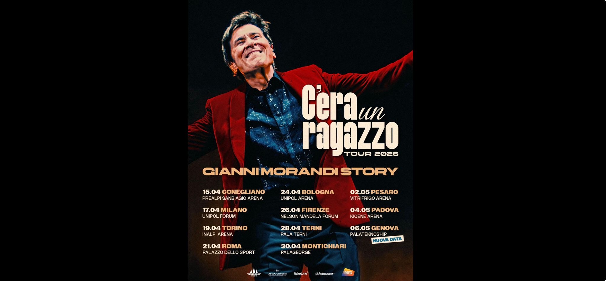 Un nuovo capitolo si aggiunge alla storia musicale di Gianni Morandi, che annuncia oggi C'ERA UN RAGAZZO - GIANNI MORANDI STORY, la tournée prodotta da Trident Music e in partenza ad aprile 2026, che lo vedrà impegnato con 10 nuovi appuntamenti nei principali palasport italiani.